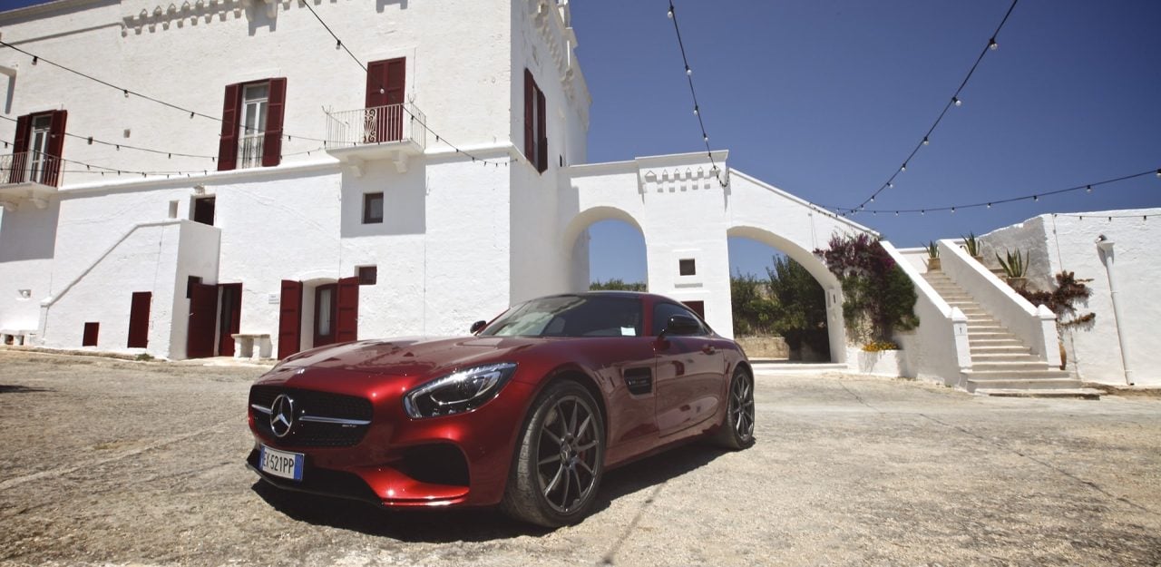 Apulia (Puglia in Italian) – famous for its white villages, crisp clear sea, vibrating nightlife, full bodied red wines and exceptional gastronomy products – stretches from Gargano to Santa Maria di Leuca forming the heel of the Italian peninsula. And Valle d’Itria – a colorful, hilly ancient land of fairytale structures called ‘trulli’ and fortified mansions known as ‘masserie’ – is probably the most iconic area of this southern region, that in the last five years witnessed an escalation of tourists. None of which – at least judging from their lit up faces – had seen before the very German and very artistic take on a muscle car, nor heard the sledgehammer sound of the ferocious V8 assembled by the lunatics from the AMG division. This said, let’s focus on tourism and charming retreats while car fanatics should refer to the gripping test-drive of my Hong Kong colleagues with an exhaustive technical analysis of this magnificent vehicle. The only sentiment I’d like to add before moving on to the finest addresses between Fasano, Cisternino and Ostuni, is that the AMG GT S, with its refined equilibrium of spheres and sharp angles, her enthusiastic attitude towards drifting and the barely manageable performances, is a joy to watch, drive and listen to, and every meter of this 1500km drive from Rome to Puglia and back had the same effect as inhaling helium.
