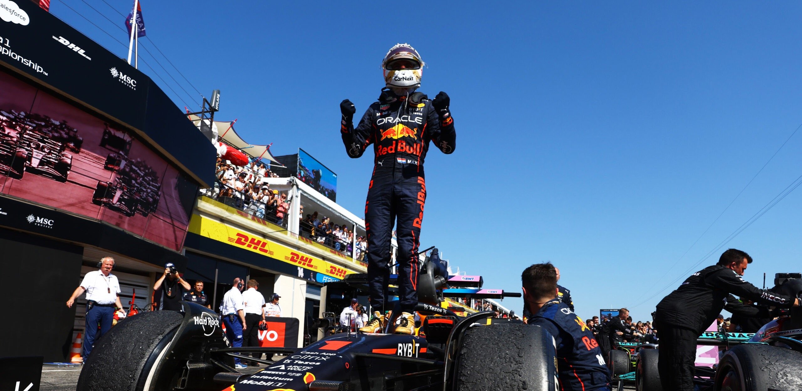 在咸美頓一級方程式職業生涯的第三百場中,他以令人印象深刻的成績獲得第二名,而隊友羅素在與佩雷斯的激動人心的對決中贏得第三名,創造平治在2022賽季的第一個雙車手齊登領獎台。